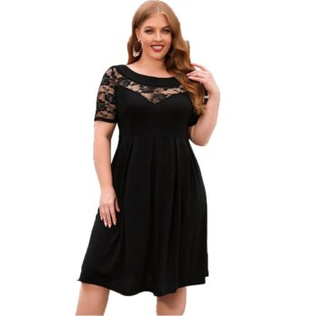Plus Size Dresses for Women 2023 Summer Midi Elegant Short Sleeve Lace Patchwork Black Party Dresses Female Outfits Clothing 4XL