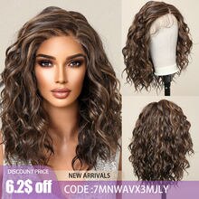 Lace Front Synthetic Wigs Preplucked Curly Wave Brown Golden Highlight Shoulder Length Lace Wig for Black Women Heat Resistant